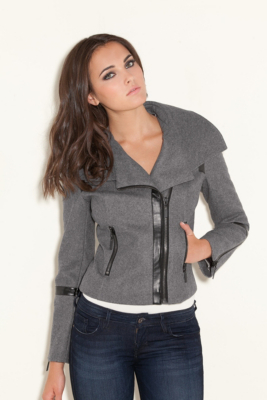 Update your outerwear with this wool-blend asymmetrical coat. Its faux-leather accents and oversized collar give it a tough-but-chic vibe that takes you through the cooler months in enviable style. • Fold-down collar. Long sleeves with zipper closures. • Faux-leather trim. Zipper pockets at lower front. • Off-center front zipper closure. Satin lining. • 60% Wool, 40% Polyester. Lining: 100% Polyester.