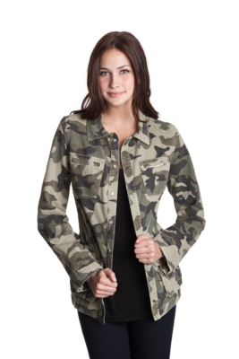 Add some laid-back attitude to your off-duty looks with this casual cargo jacket. It's the perfect way to work the camo trend into your day-to-day style. Add golden accessories for a glamorous touch. • Lightweight collared jacket. Long sleeves. • Camouflage print. Two zippered patch pockets and two cargo pockets with snap closures. • Snap button closures • 100% Cotton .